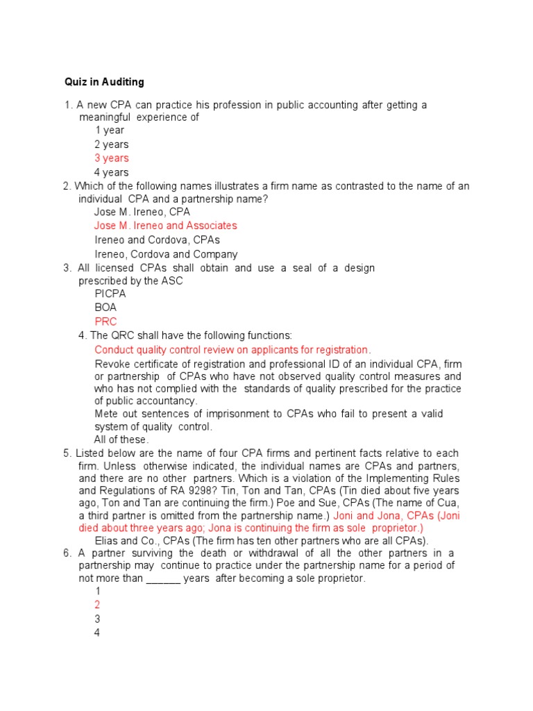 Quiz In Auditing Pdf Certified Public Accountant Business